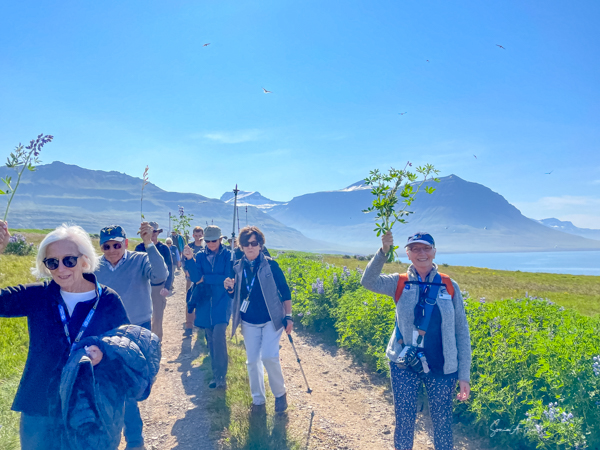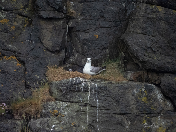 Arctic Terns are in the Laridae family and ‘family’ is a good term for them. We were here during breeding season and the terns are extremely territorial and protective of their eggs, which are very well camouflaged in a small depression in the ground, and of their young (as they should be!). On several islands, as we came within range of their nests they began flying and screeching and attacking us. Yes, attacking us. We were given sticks to hold up as the terns will attack the highest point. Better the stick than your head. On the island of Skalanes, we picked Lupins to hold up high.