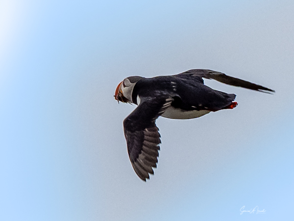 I thought it would be quite noisy with puffins all around, but it was not. Puffins are silent when they fly and only vocalize in their breeding colonies.