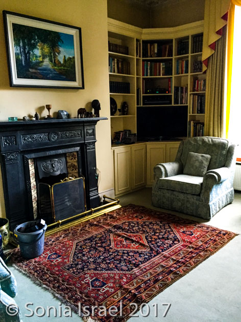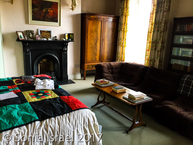 Gwendolyn and her husband Pearce could not have been nicer. She made tea in her kitchen and served it with chocolate chip cookies from a box. She sent Pearce to the store to buy milk (you can’t have tea without milk). She explained that the doors can be painted any color you want. Pearce painted theirs pink because it was the undercoat, and he liked it. She toured us through her beautiful garden and the upstairs which had two bedrooms. There was also a sunroom that was turned into another bedroom. Each room had its own fireplace where turf (peat) was burned. This also explained why on each roof there was one large chimney with several smaller ones coming out of it. One for each fireplace. We talked about their children (they have only been married 8 years and each had their own children). Pearce has grandchildren, one just born. Gwendolyn was widowed when her daughter was five. She went looking for a job as an executive assistant. She interviewed with one man who asked if she planned on getting remarried. She replied, “No one has shown any interest.” He said, can you start tomorrow, and she worked there for 18 years until he retired. She said when she started working there, he asked if he could call her sweetie as he could never remember names. And he called her that for 18 years. Different times.