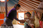 The family, like all nomads as far as I can tell, were very generous. We were offered us some aaruul, (remember, this is a Mongolian delicacy made of curdled milk that is dehydrated and thoroughly dried in the air and sun). The grandmother sat and talked with us (via Azaa translating) about the nomadic life. Much of their income comes from their camels, but of course they have sheep and goats and horses as well. Two of her grandchildren were there and we gave them some gifts, but they mostly wanted to run outside, ride their bikes and play as all little children would do. Her son was a former wrestling champion and his medal hung in the ger. And the TV of course was on the entire time.