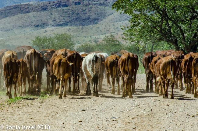 At one point we had to slow down as the road was full of cattle. Remember, around here, cows are money. This was one rich person as there were lots of cows. More likely, it was cattle from several people within a Herero tribe.