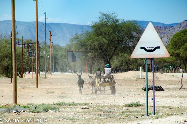 We kept driving, past a trickle of the Wanib River. We would be told later that the Wanib is “to us all” as it goes through so many villages. The Wanib is the boundary between the Damara tribes and the Herero tribes. I was sorry not to be able to visit any Damara villages, especially since Charles is Damara.  That will have to wait for next time.