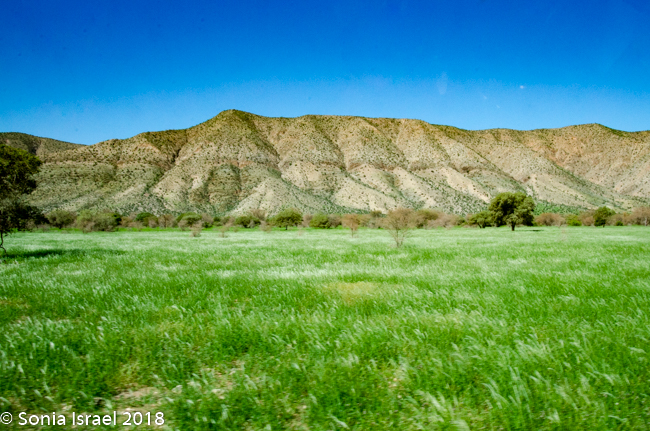 The area was one large plain full of fields of grasses in different shades of green. As in all of Namibia, the terrain kept changing, but, unlike the Skeleton Coast (see Namibia Chapter 3), it was always green.