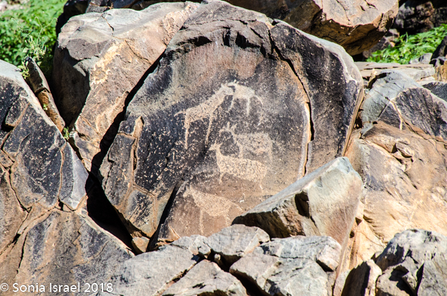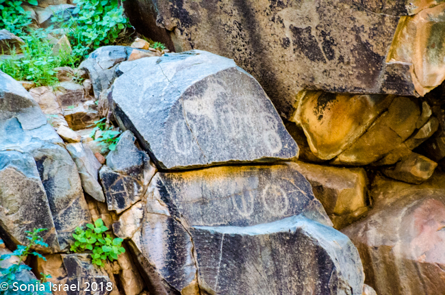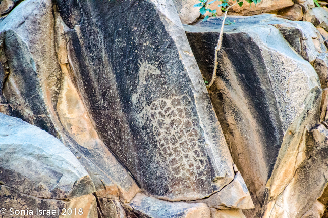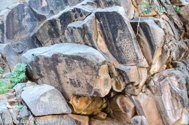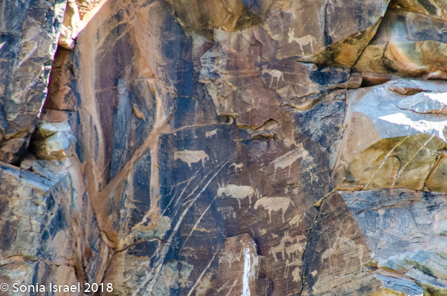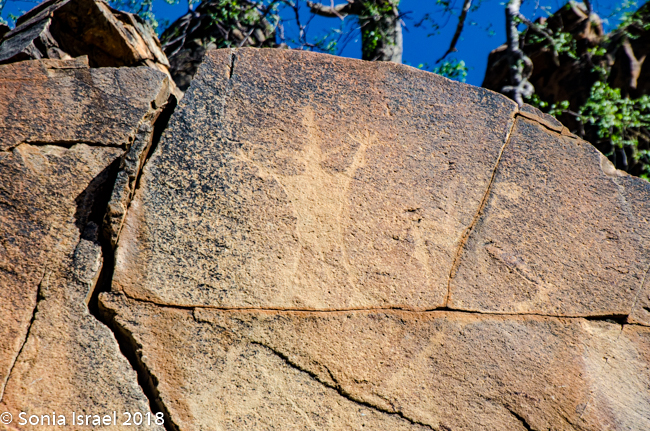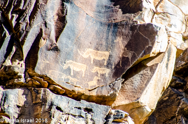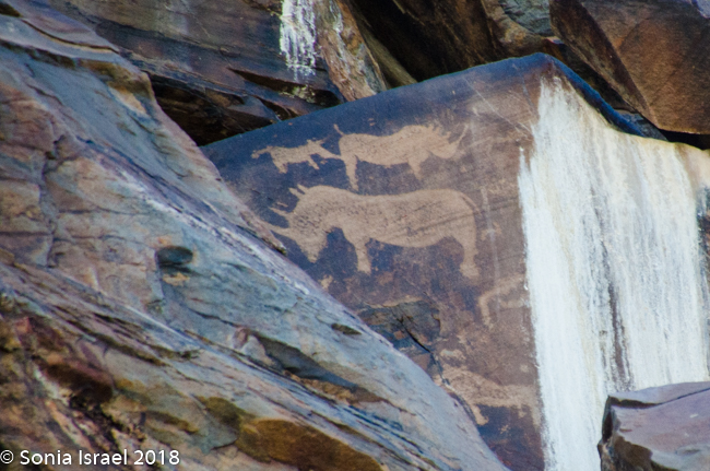 There were engravings of giraffe, rhinos, people, skins, oryx and any other animal you could see in this area. Some were quite high on the rocks. It is estimated that these carvings are 2000-2500 years old and were made by the San (once called the Bushmen) who used to live in this valley.