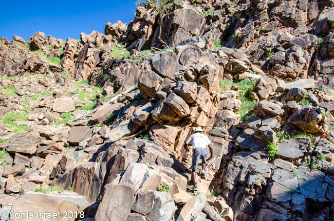 At one point, Ueera climbed up the rocks, as agile as an antelope, to be sure we could see the carvings. And then, just as gracefully, he ran back down.