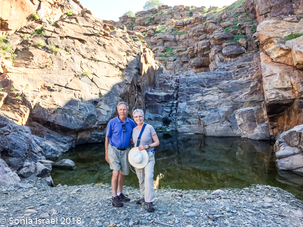 We drove and drove and eventually stopped in what looked like the middle of nowhere. We climbed out of the car and hiked over rocks in a dry riverbed, slowly making our way up hill. We were standing in a narrow path between two mountains, with sheer rock faces. And at the end of this dead end valley was a pool of water reflecting the mountains right back at us.