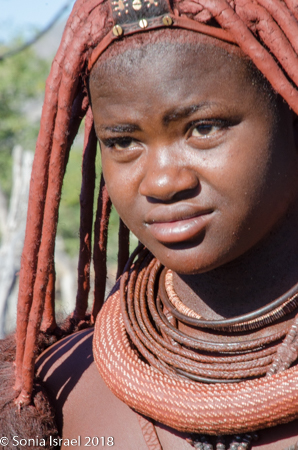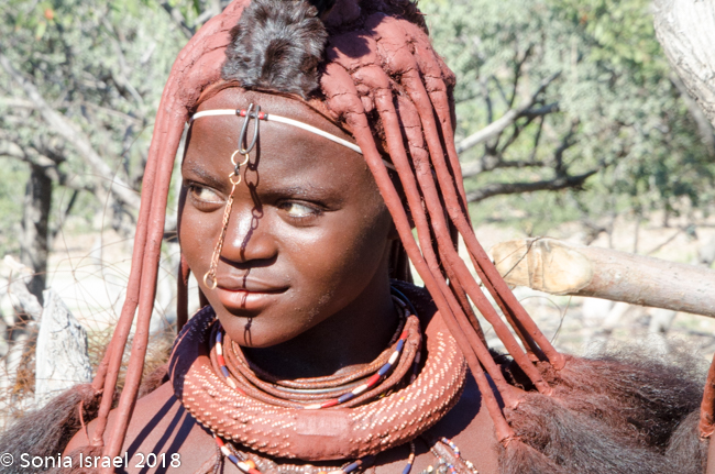 The Himba women (and not the men) apply a mixture of special pastes, called otjize, which are scented with aromatic resins. The color of this paste is a deep orange, which represents the color of the red earth and of blood, the essence of life. The Otjize is believed to ensure the ideal of Himba beauty. But practically speaking, this paste keeps the skin clean and moist, blocks hair growth (why don’t Americans know this?) and acts as a sunscreen and insect repellent.
