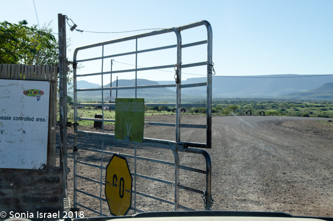 We left the Anabeb conservancy, stopping at a closed gate where the car was inspected for plants and food, as we were leaving a stock disease controlled area.