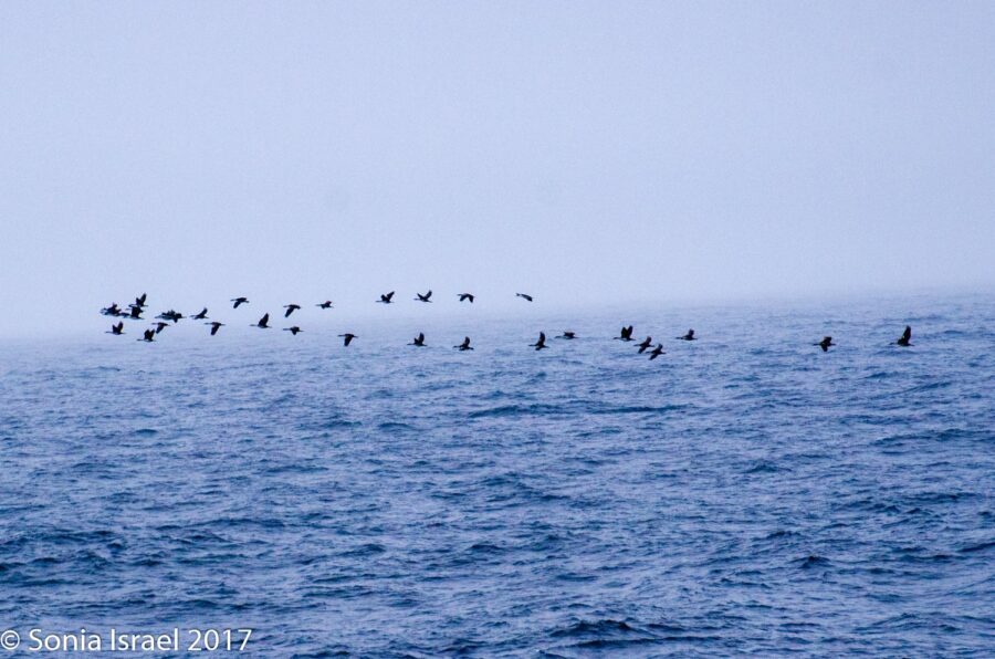 We woke up early, eagerly lifted our blinds and looked out our window. The scene was one of white on white with a few black dots. It had snowed here since we stood here a week ago. After yesterday’s high winds, we were not sure what we would find here, and whether we would be able to go ashore. But while the temperature was low, the wind howling, it was only about 12 degrees F with the wind chill factor. Doable, as long as we again put on every piece of clothing we had brought along!