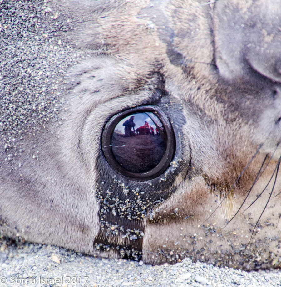I put on my jacket and went to the top deck to take it all in. The sky was blue, the sun was coming out and began reflecting on the glaciers. The plain was covered in snow and the penguins were huddled in groups at the shoreline, reflecting in the calm water. There were a few elephant seals bellowing, but not as many as on other beaches in other parts of South Georgia.